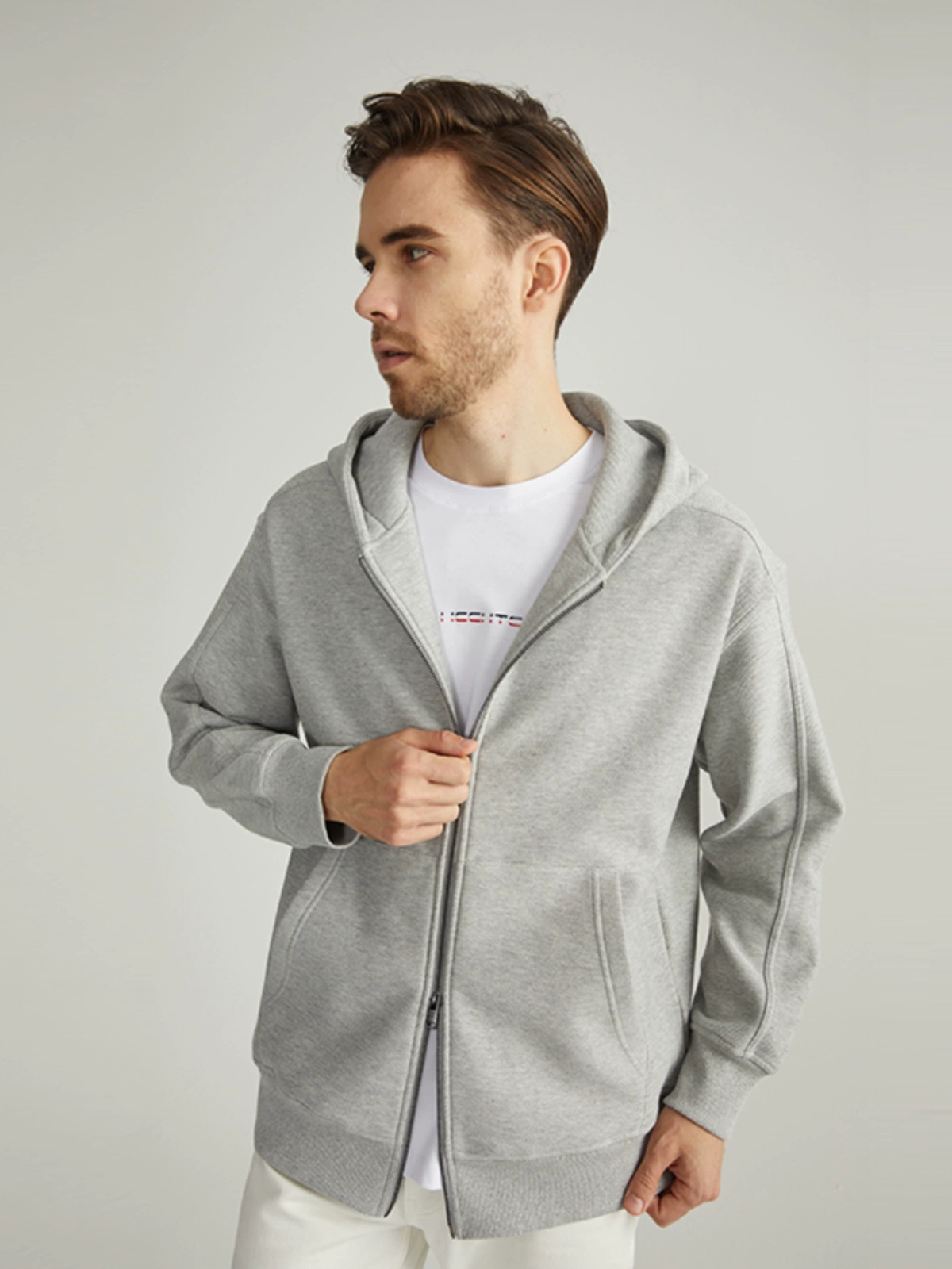 男士重磅开衫卫衣连帽短款秋冬新款长袖宽松灰色拉链外套
