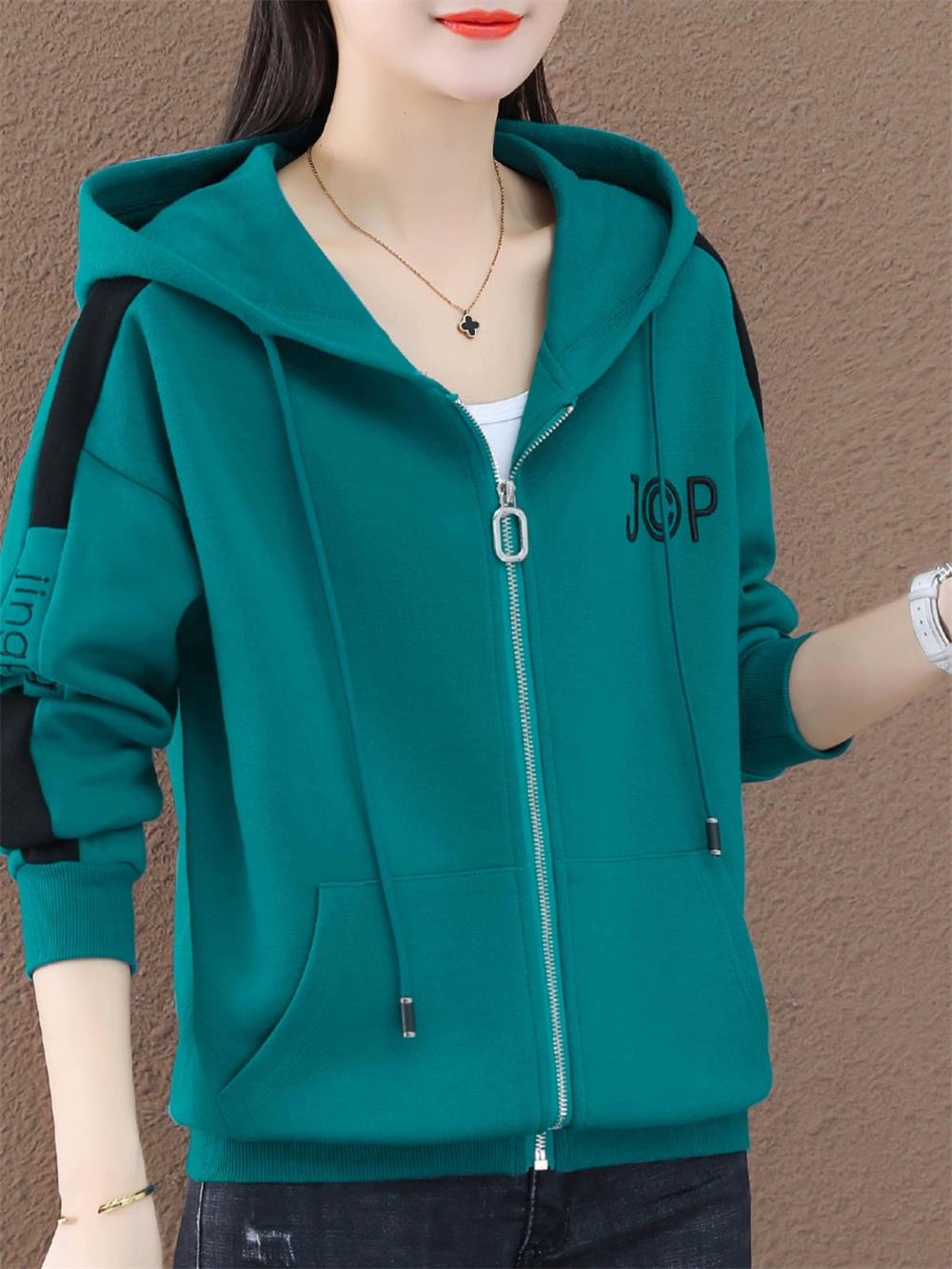 韩国开衫女士卫衣春秋薄款2024年新款秋季上衣女装拉链带帽外套