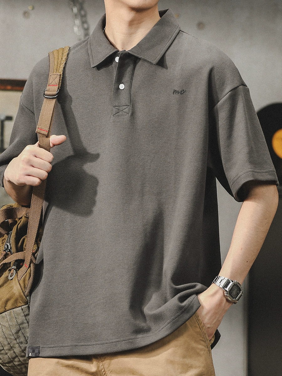 美式复古POLO衫男夏季简约风重磅男装宽松大码男士短袖T恤保罗衫