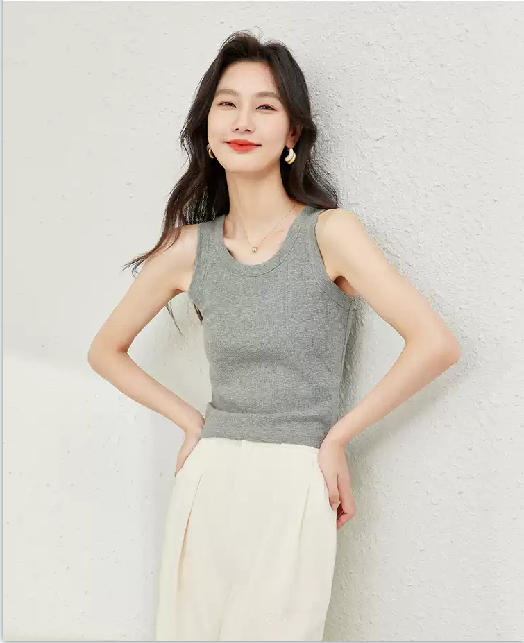 灰色吊带背心女外穿带胸垫设计感小众西装内搭无袖打底短款上衣夏