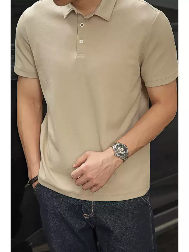 美式复古210g棉索罗娜凉感polo衫短袖免烫轻熟T恤夏季男显瘦